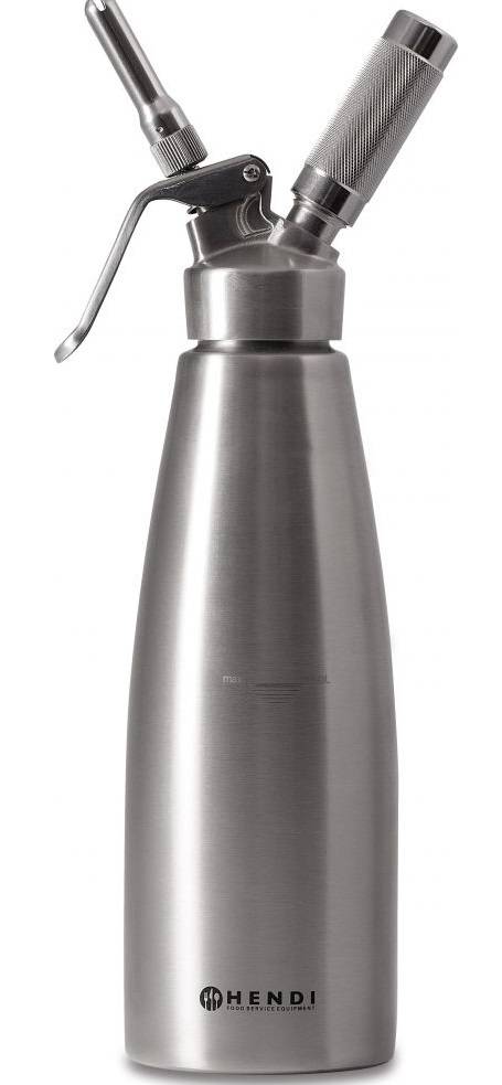 Makes delicious whipped cream, mousses, desserts, cold foams and sauces easily. Perfect for garnishing cappuccinos, coffees, shakes and ice cream. Suitable for dispensing warm creams and sauces up to 70°C. Keeps contents fresh for up to 14 days in the refrigerator. Includes 3 stainless steel nozzles and a cleaning brush. Requires cream charger (N₂O) to operate, not included.