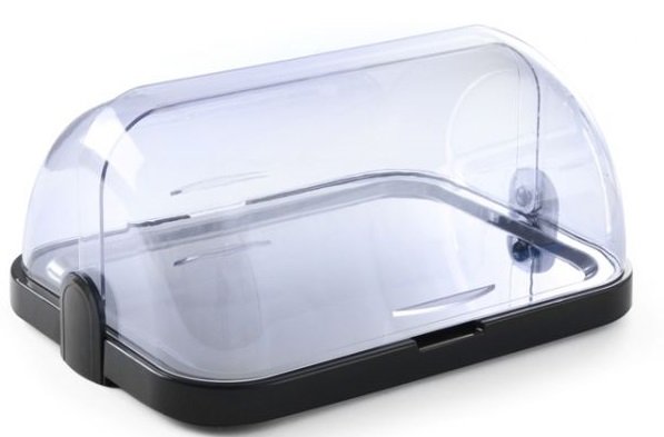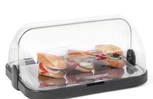 ABS plastic with transparent SAN plastic rolltop cover. Including stainless steel tray and 2 cooling elements.