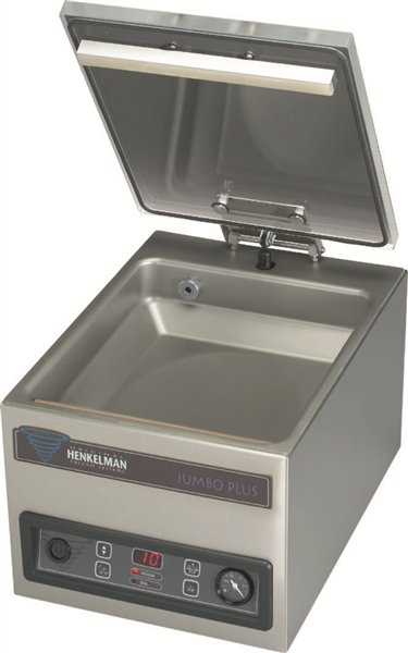 JUMBO Series has a great price-performance ratio. These compact devices are famous for their reliability and ease of use. The electronically-controlled, small packing JUMBO PLUS single strip with a length of 280 mm is provided with a vacuum pump by Busch capacity of 8 m³ / h that yields 99.80% of vacuum. A single cycle is 20-40 seconds. The device is made of stainless steel has hygienic pumped chamber from a single piece of sheet metal. It has the standard control oil level, the function of the stop strip and the shut-off zgrzewającą.Zawiera transparent cover, easily removable sealing means, and wireless terminal control plate for adjusting the height of the vacuum chamber.