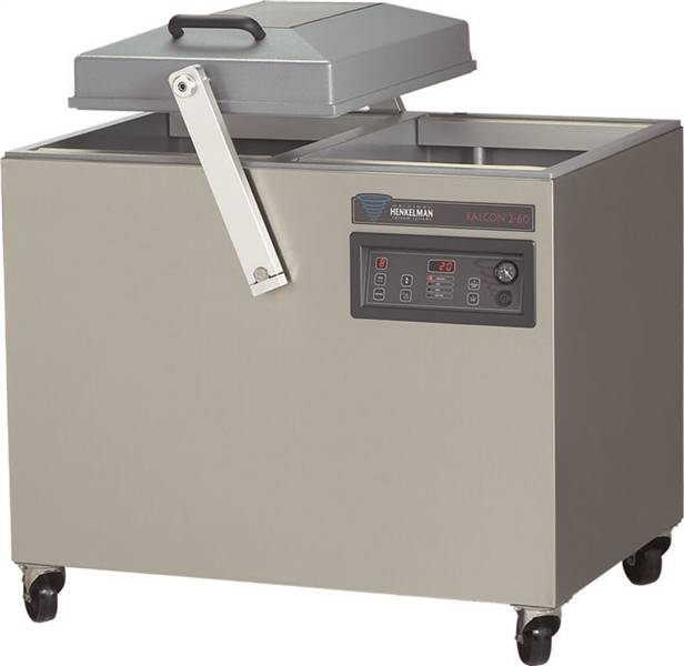 chamber and covers a series of FALCON is made of aluminum and stainless steel. Packing these are widely used not only in food processing plants and warehouses, but also in other industries enterprises, wherever there is a need vacuum packaging. Electronically controlled packing Falcon 2-60, with two strips in each chamber with a length of 450 mm, equipped with a vacuum pump by Busch capacity of 63 m³ / h , which allows for 99.98% vacuum. A single cycle is 15-40 seconds. The device is made of stainless steel has hygienic chamber made of extruded aluminum and an aluminum lid with a window . Equipped with a digital interface with ability to store programs 10 control oil level, the function of the stop strip and the shut-off welding. Contains an easily removable sealing wireless terminal in a vacuum chamber, and adjusting plate for adjusting the height of the vacuum chamber.