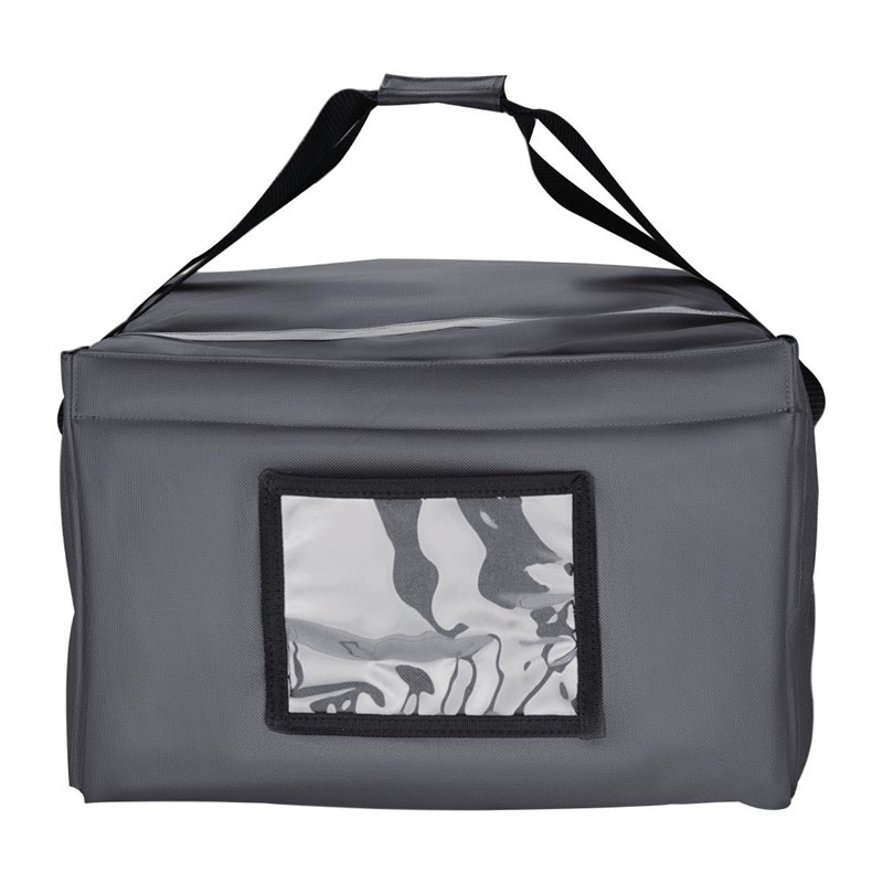 Fold-flat, easy-clean nylon bag with display window for card identification. Insert to help maintain bag shape and stability are sold separately. Thick insulation and high-quality inner and outer polyester fabric will keep food at the perfect temperature for longer. Can be used for takeaway service, or for transporting hot and cold food around large venues.