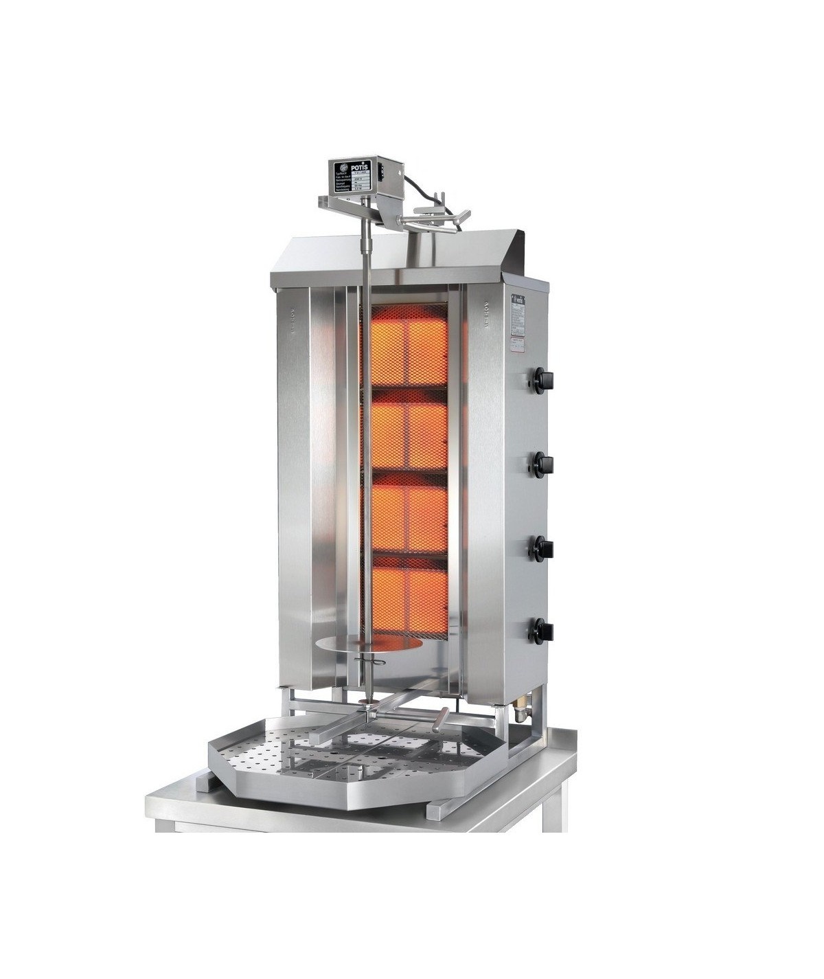 HomeRestaurant EquipmentCooking EquipmentKebab MachinesKebab gazowy 4 palniki, wsad 70 kg, 14 kW, 550x510x(h)1120 mm z tacą na tłuszcz o wym. 550x550 mm