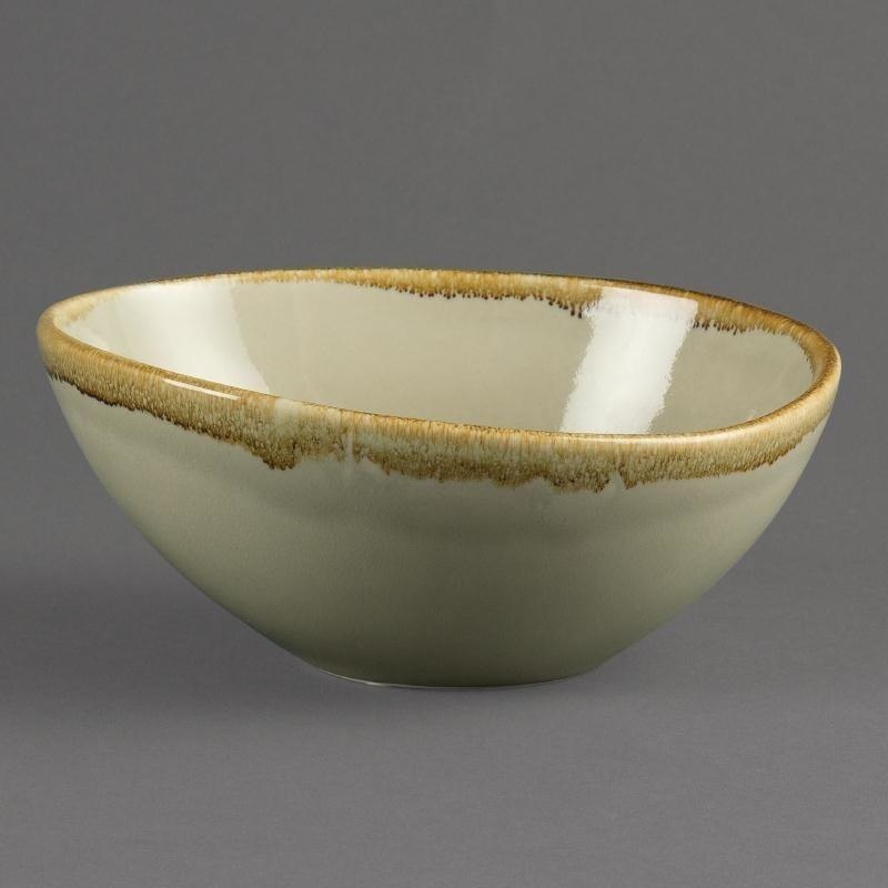 If you create and serve delicious, rustic, homemade food then these 215mm Moss bowls from Olympia's Kiln collection is perfect for you. Each 215mm bowl is finished by artisans and has the appearance of hand thrown crockery. The glaze used interacts with the naturally occurring minerals in the clay and creates a unique, mottled effect. Each bowl is strong enough to withstand extensive commercial usage.
