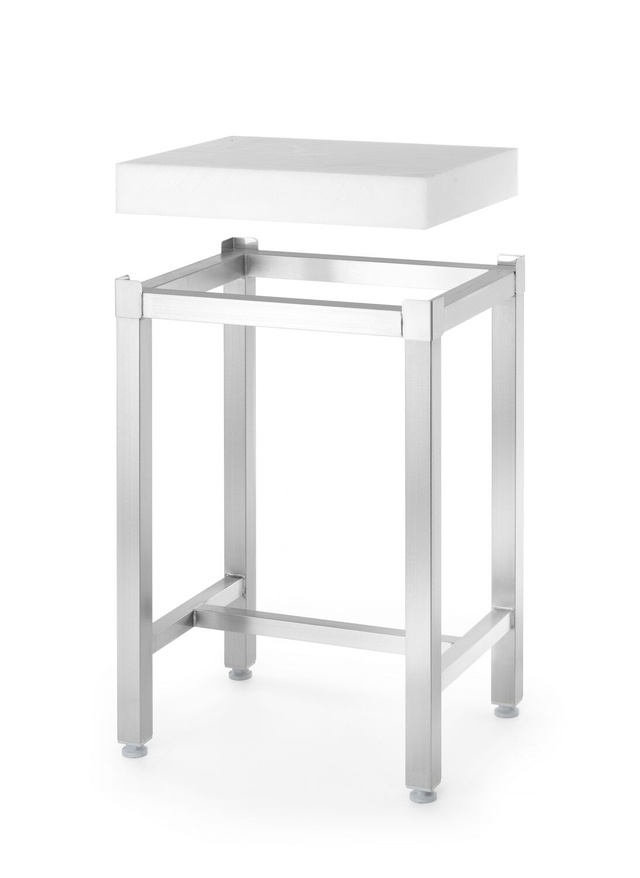 Butcher block made of polyethylene with a stainless steel base, dim. 500x400x (H) 830 mm