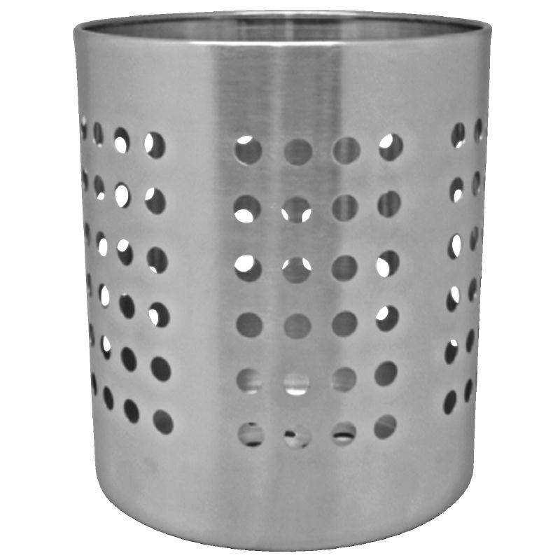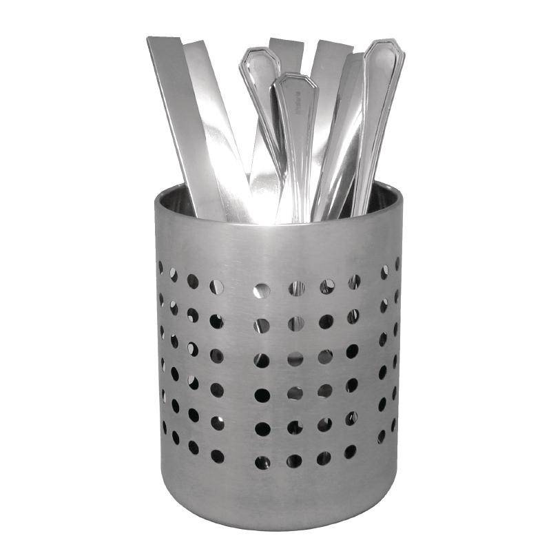 Stainless steel. Ideal for storing wet or dry cutlery. 130(H) x 120(Ø)mm.
