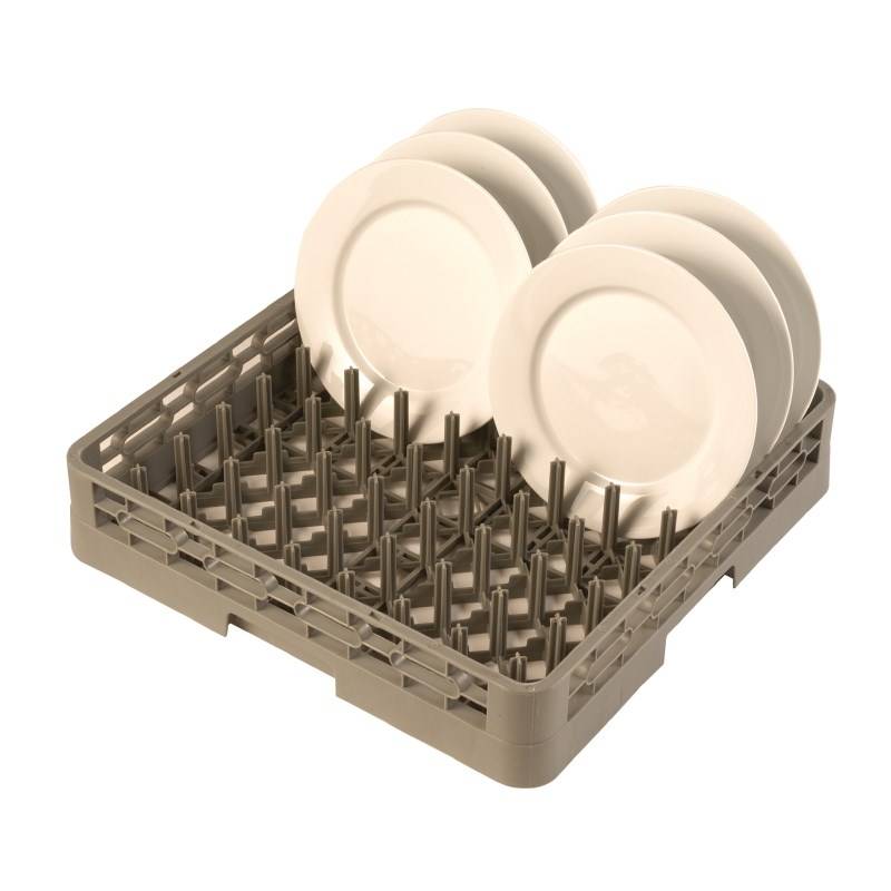 Faster drying times and superior cleaning results have never been easier thanks to this plate dishwasher rack from Vogue. In a sturdy design, this rack allows plates, dishes and containers to be held in place securely with the moulded pegs. The rounded corners ensure that this sturdy item can be pushed in and pulled out of a washer in a smooth operation. Moulded pegs dimensions: approximately 11.46mm width (at the base), 9.78mm width (at the top), 80mm height. Gap in between pegs is approximately 79.96mm.