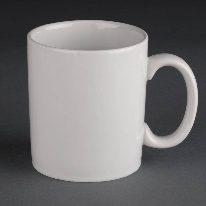 Great value white porcelain mugs which are tough, functional and practical making this popular crockery range ideal for use in pubs, canteens and bistros.