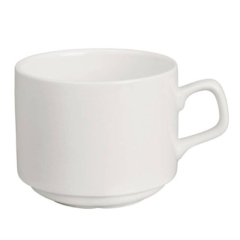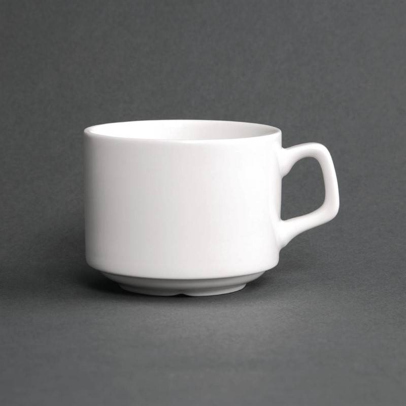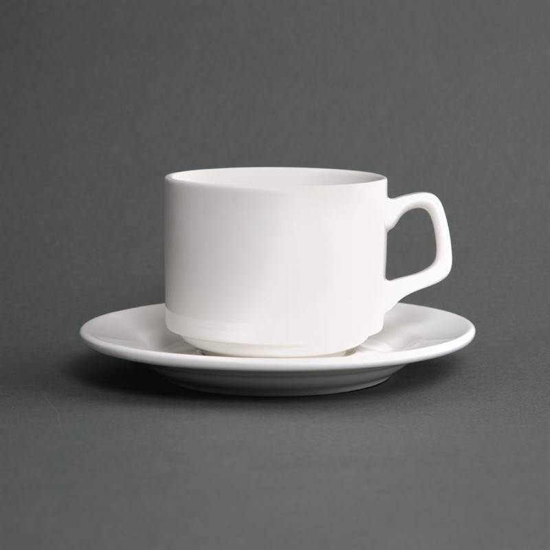 Stackable, stylish and strong, these modern-look cups by Lumina are perfect for any catering environment in search of looks with strength to match. Fully vitrified for unbeatable strength and shine, they're ideal for heavy everyday use in hotels, gastro pubs, restaurants, cafes and more. The fresh white colourway and simple, stylish design brings a fresh feel to any table top, adding a touch of class to your drinks service. Matching saucer available.