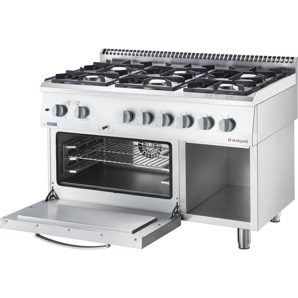 Kuchnia gazowa z 6 palnikami i piekarnikiem elektrycznym z termoobiegiem 21 kW, G30/37 mbar