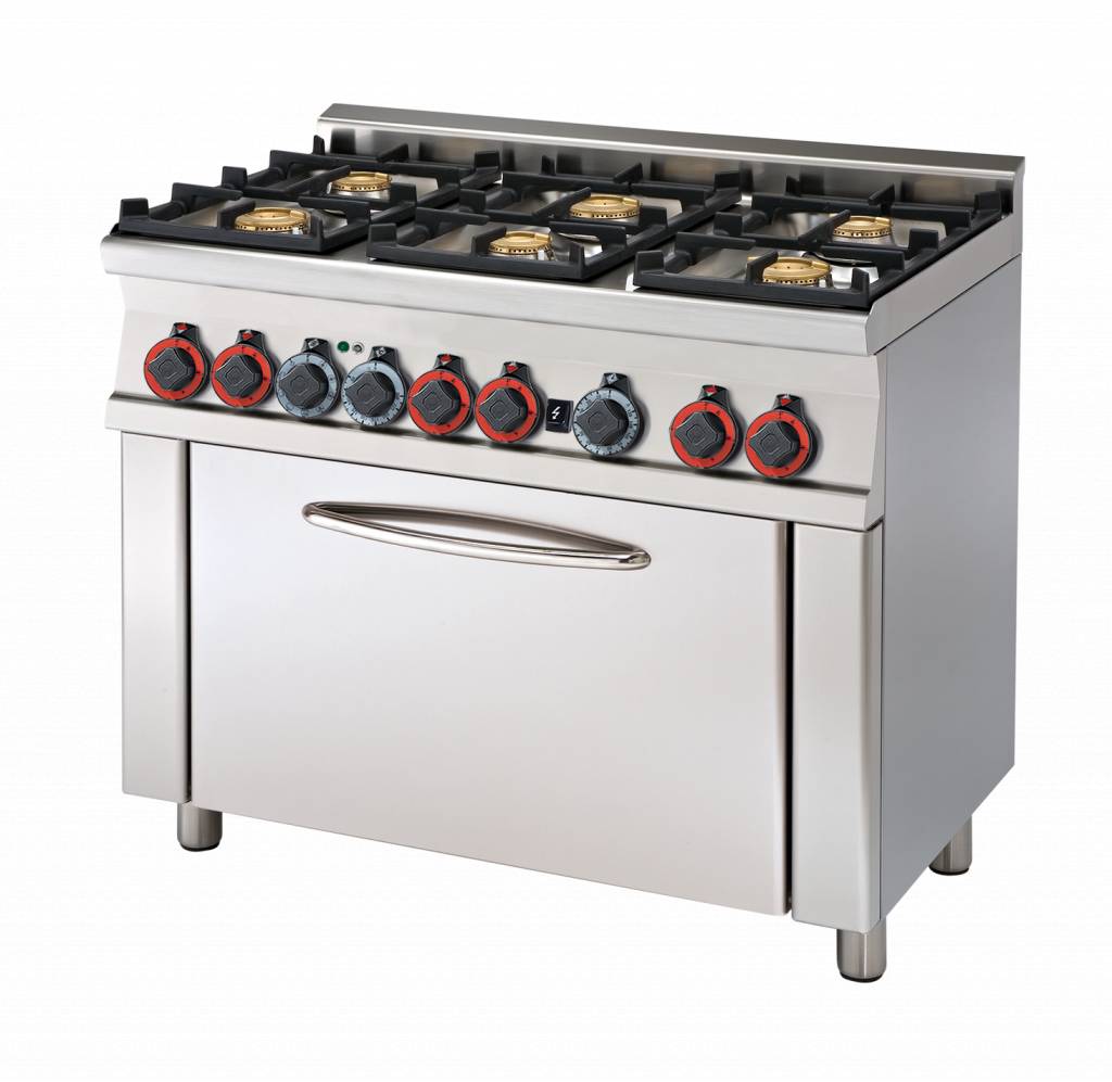 Gas Cooker with 6 Burners, Oven with Grill Function GN 1/1, 31 kW