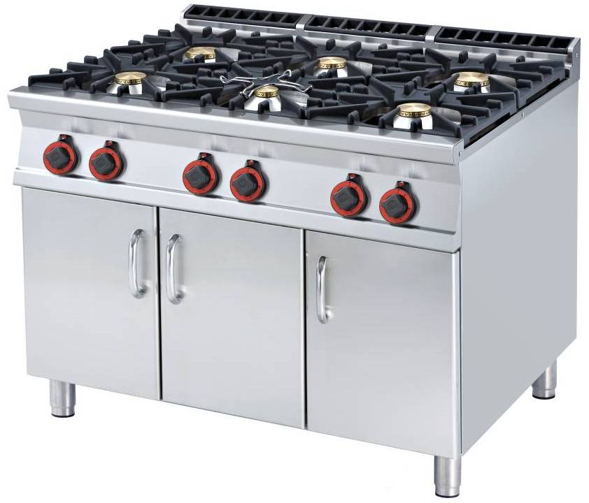 Gas Cooker with 6 Burners and Cupboard, 45 kW