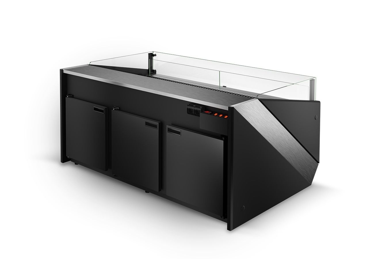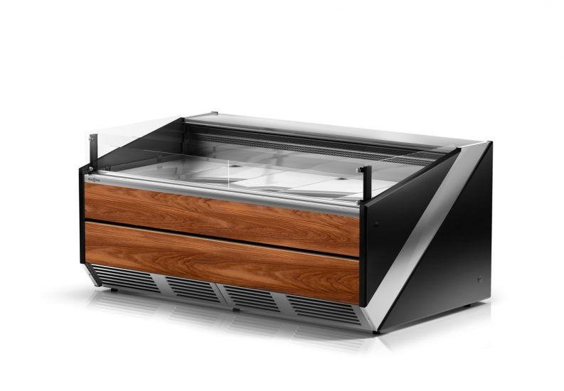 Lada chłodnicza, szyba gięta od 1 do 10 °C, 1345x1200x(h)900 mm z płytą meblową Yosemite