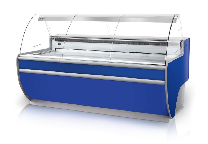 Lada chłodnicza, szyba gięta od 1 do 10 °C, 1790x1070x(h)1220 mm, niebieska