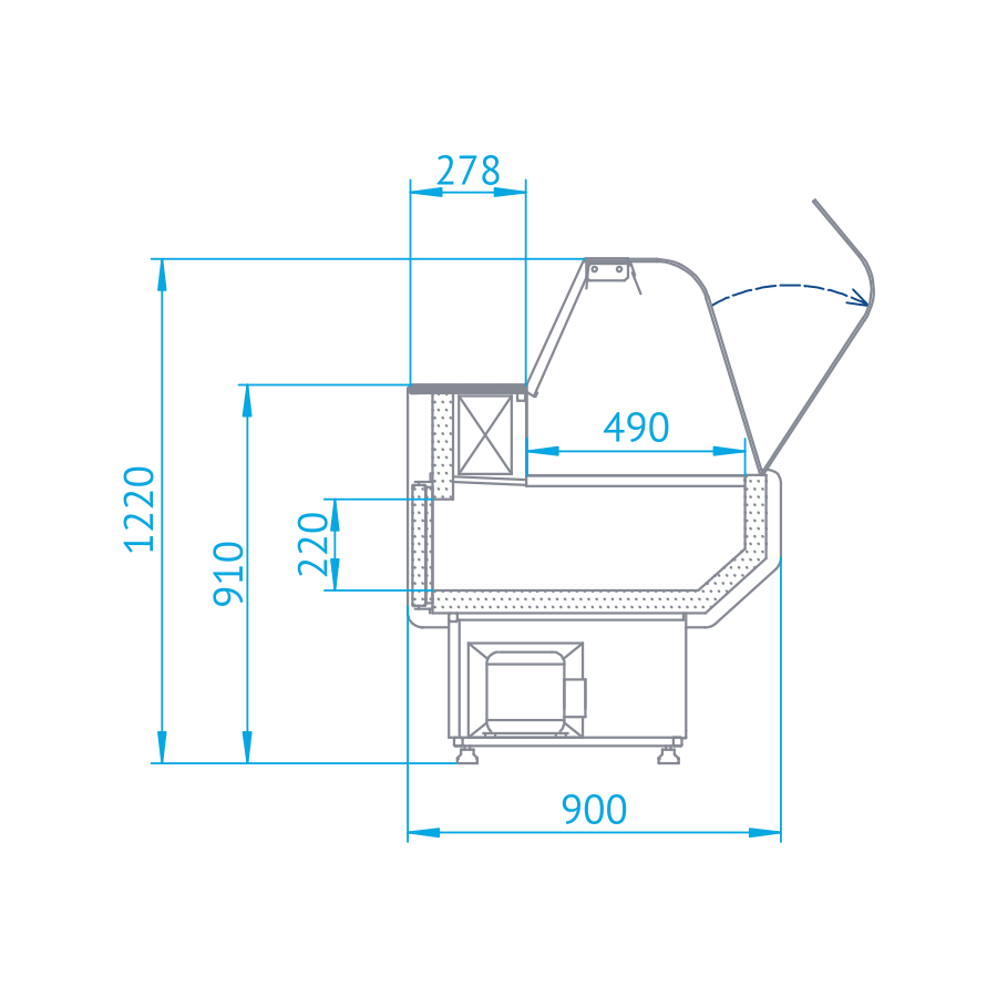 Lada chłodnicza, szyba gięta od 1 do 10 °C, 1790x1070x(h)1220 mm z niebieskim frontem