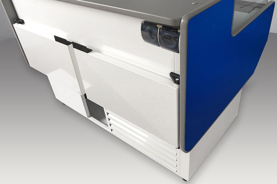 Lada chłodnicza, szyba gięta od 1 do 10 °C, 1520x900x(h)1220 mm z niebieskim frontem