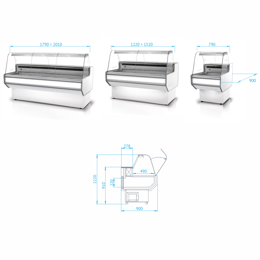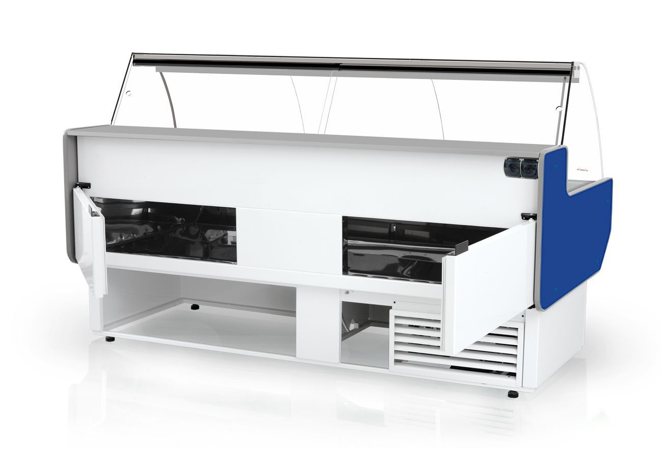 HomeRefrigerationMerchandising & Display RefrigerationRefrigerated Deli CasesLada chłodnicza, szyba gięta od 1 do 10 °C, 790x900x(h)1220 mm z niebieskim frontem