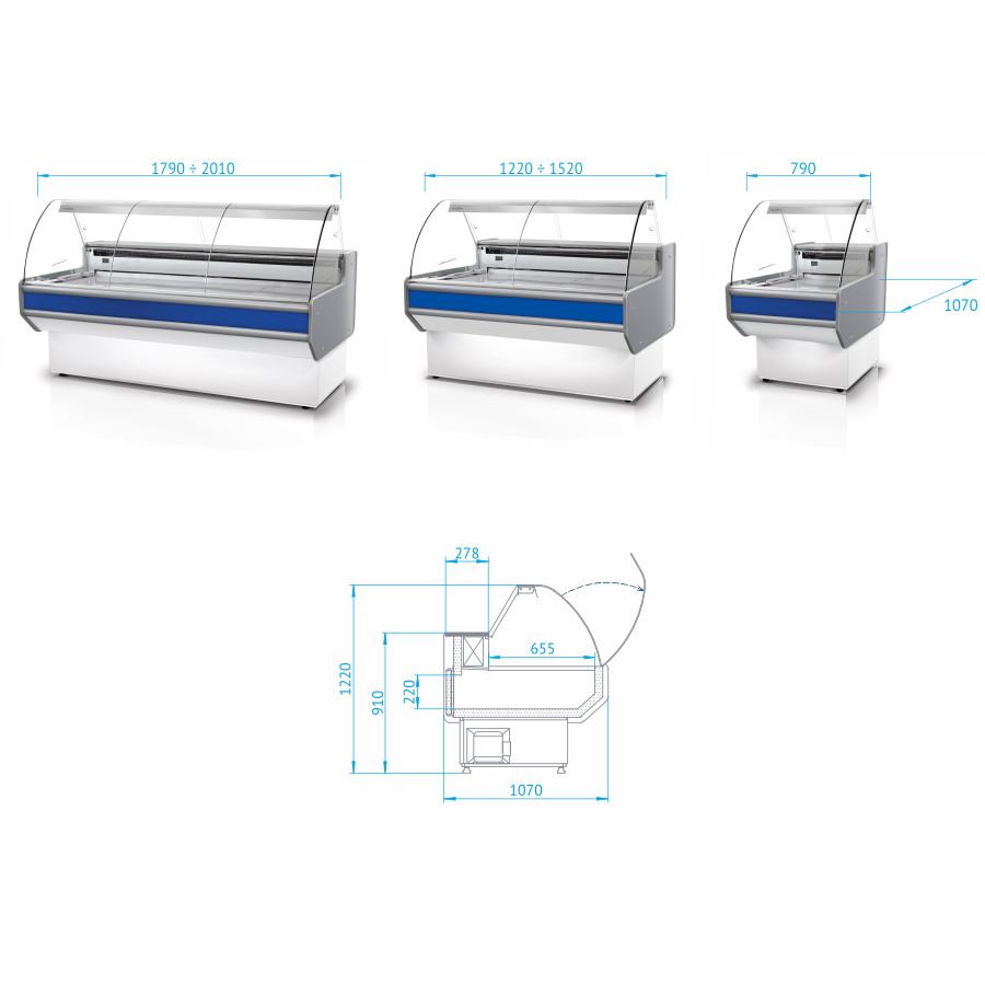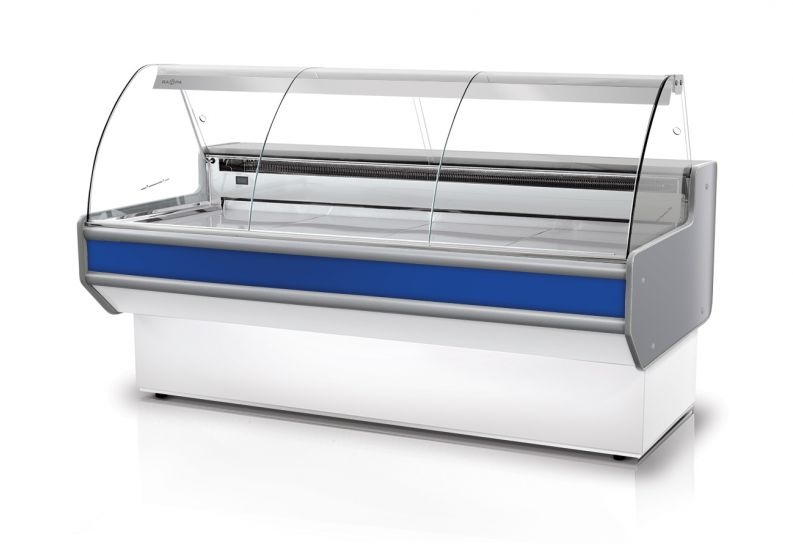 HomeRefrigerationMerchandising & Display RefrigerationRefrigerated Deli CasesLada chłodnicza, szyba gięta od 1 do 10 °C, 790x900x(h)1220 mm z niebieskim frontem