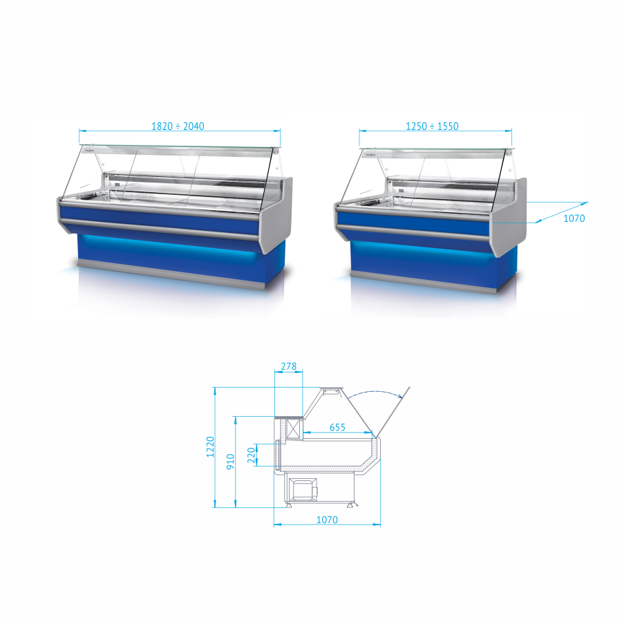 HomeRefrigerationMerchandising & Display RefrigerationRefrigerated Deli CasesLada chłodnicza, szyba prosta od 1 do 10 °C, 1250x1070x(h)1220 mm, niebieska