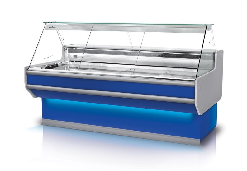 Lada chłodnicza, szyba prosta od 1 do 10 °C, 1790x900x(h)1220 mm z niebieskim frontem