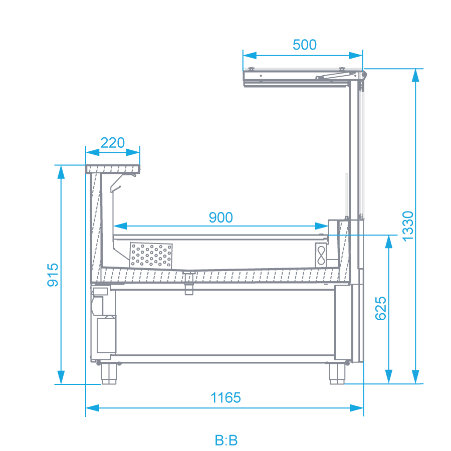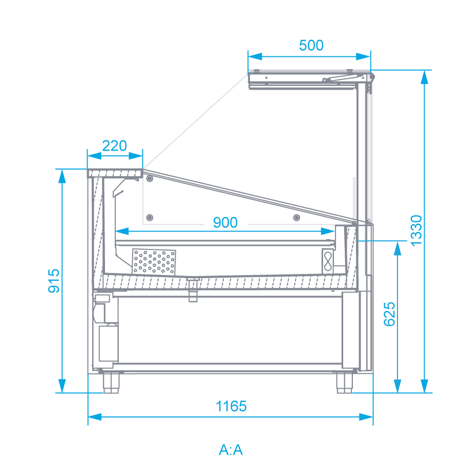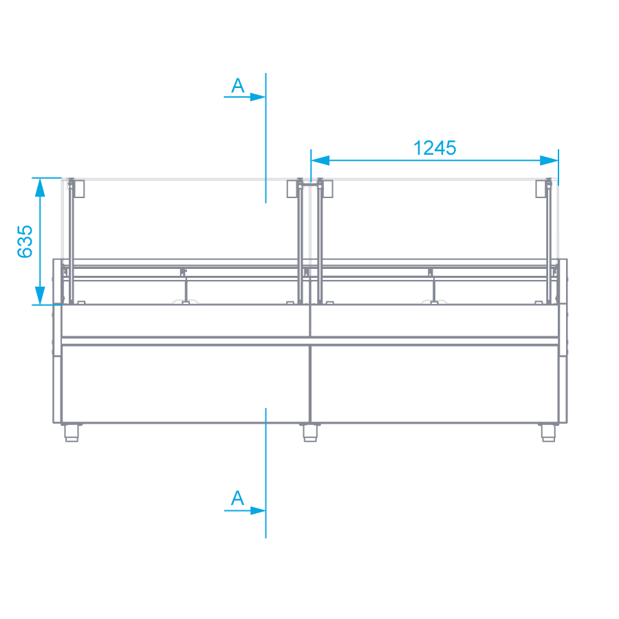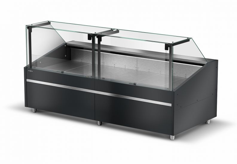 Lada chłodnicza, szyba prosta od 1 do 10 °C, 2590x1165x(h)1330 mm z paskiem