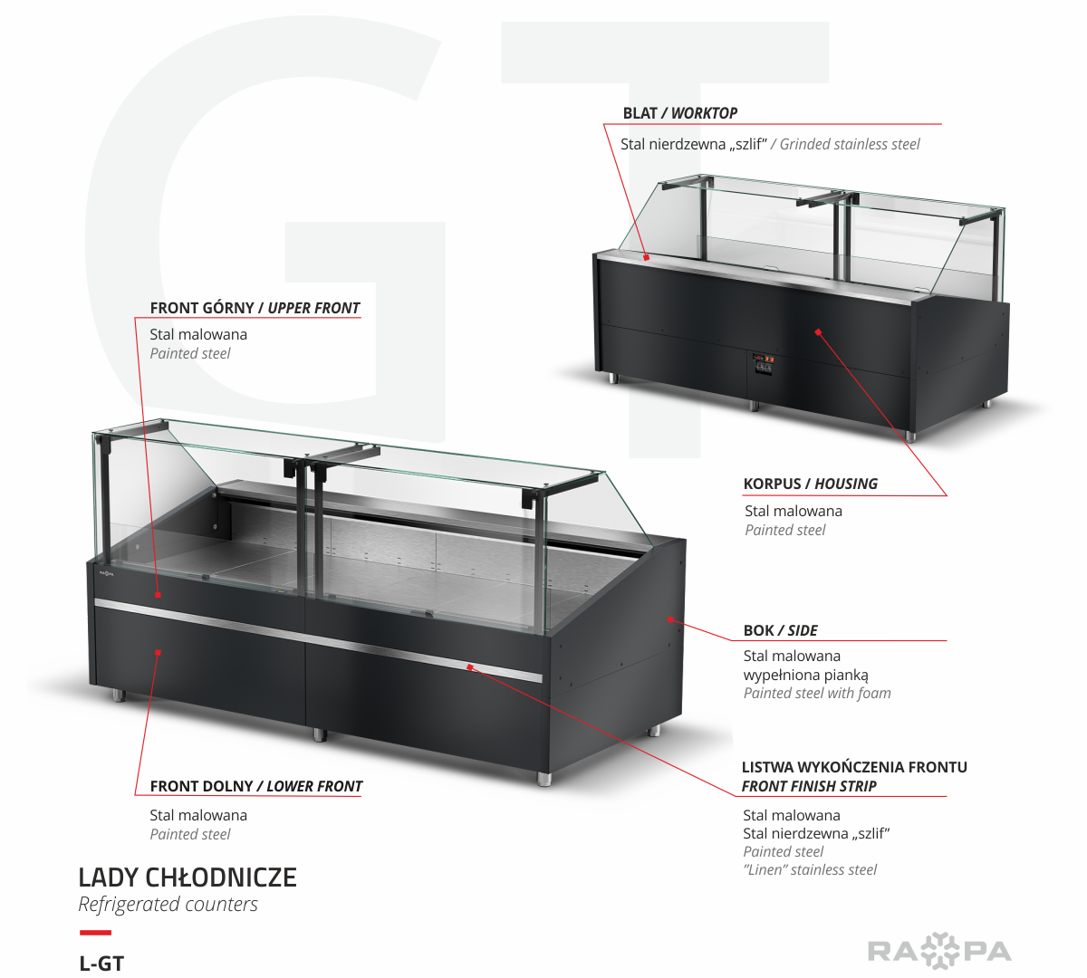 HomeRefrigerationMerchandising & Display RefrigerationRefrigerated Deli CasesLada chłodnicza, szyba prosta od 1 do 10 °C, 2590x1165x(h)1330 mm z paskiem