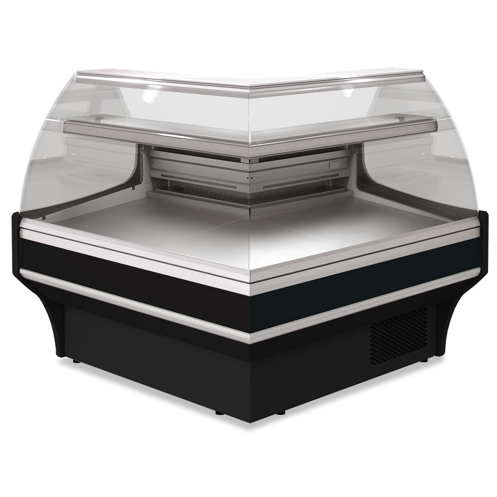 Lada cukiernicza, narożnikowa, szyba gięta od 0 do 5°C, 1335x1335x(h)1310 mm, wentylowana, czarna
