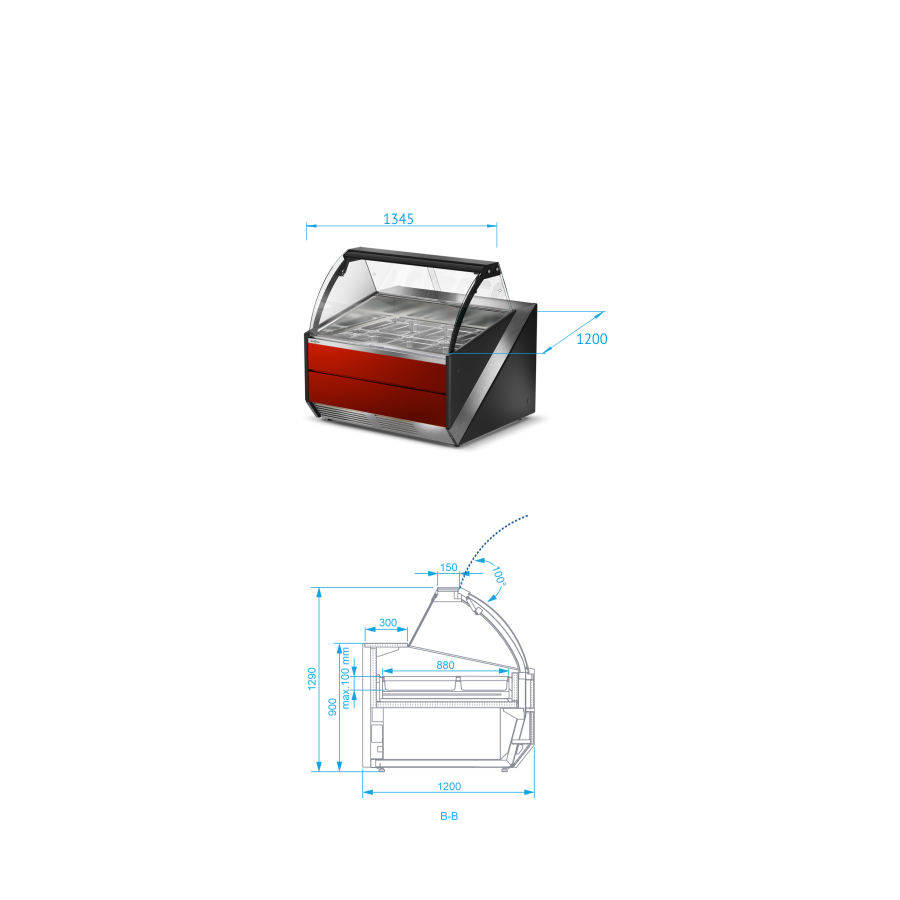 HomeRestaurant EquipmentFood Holding & Warming EquipmentHeated display casesLada grzewcza od 30 do 90°C z szybą giętą z czerwonym frontem