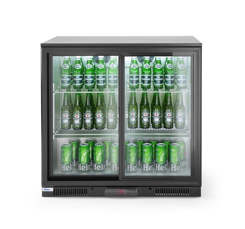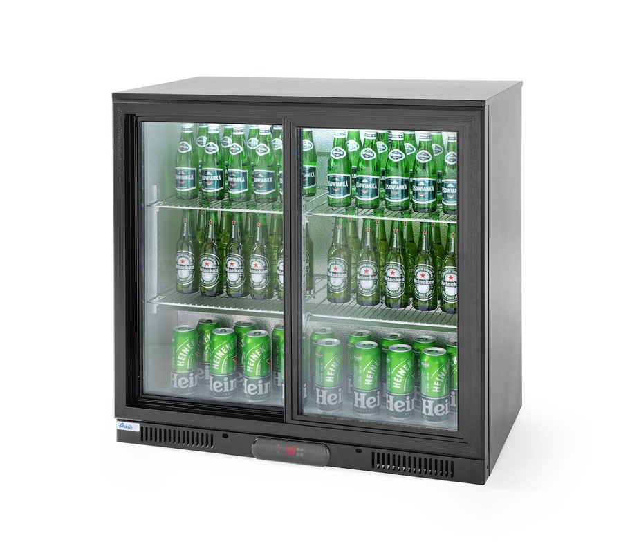 Double Sliding Doors Back Bar Cooler 228 L, from 2 °C to 10 °C, Black