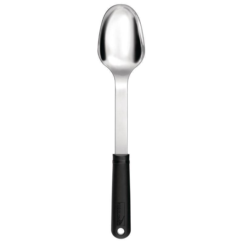 Versatile, robust and reliable, the Déglon Sabatier plain serving spoon is ideal for serving all kinds of dishes in any commercial kitchen. Featuring a polypropylene handle, the stainless steel spoon is incredibly comfortable and stable in the hand, allowing you to plate food attractively and precisely. A lip on the handle also allows the utensil to rest securely onto any bowl or tray, preventing the spoon from slipping into the food. Heat resistant up to 120°C (248°F) and dishwasher-safe, this serving spoon is perfectly suited to any professional catering environment.