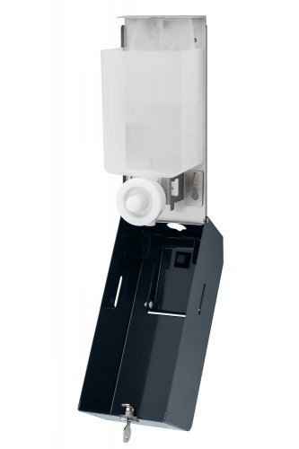 900 ml foam soap dispenser. Made of stainless steel, powder coated in graphite RAL 7016. It has a sight glass that allows you to control the amount of the remaining cartridge. Lockable with a key. Manufactured in the UK.Description