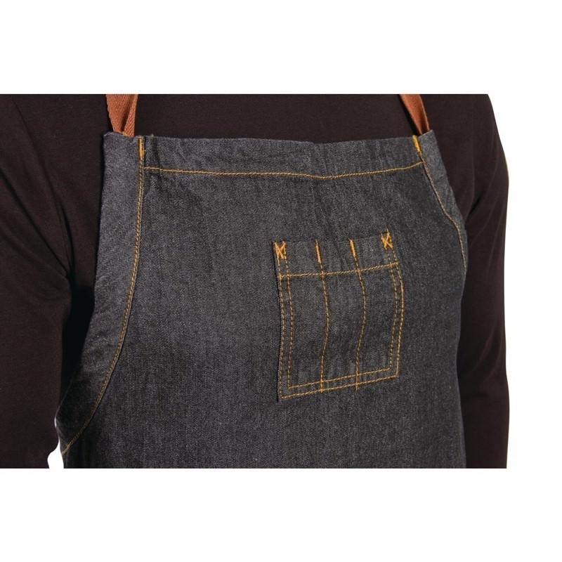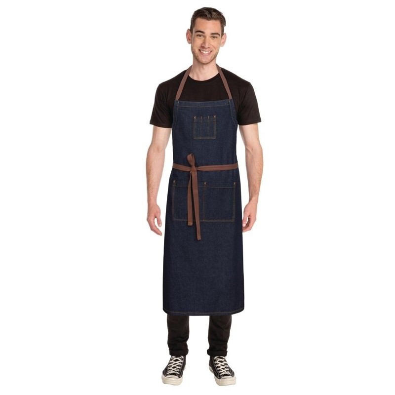 Combining street style with functionality, the Memphis Adjustable Bib Apron has adjustable contrasting ties, reinforced topstitching, double front hip pockets and criss-cross bar tacks for extra durability. Size (mm): 812(W)x 863(L).