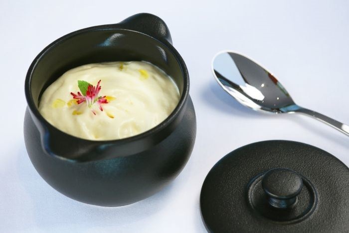 Round Cream soup bowl with a lid Volcano 45 cl, dia. 10.6 cm Chef's Fusion line PORCELAIN