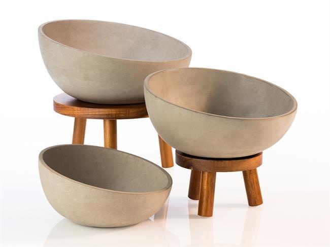 A collection of designer bowls in three sizes made of concrete, ideally suited to the buffets-style industrial. Non-slip base makes the bowl holding steady on wooden stands.