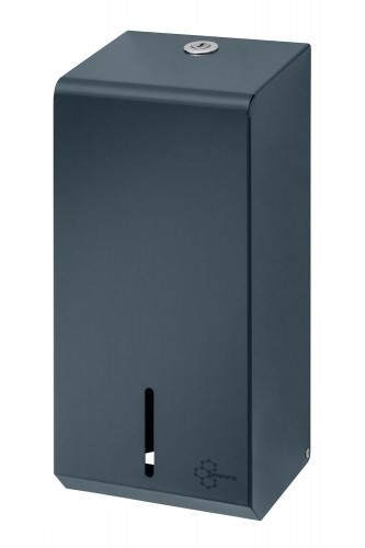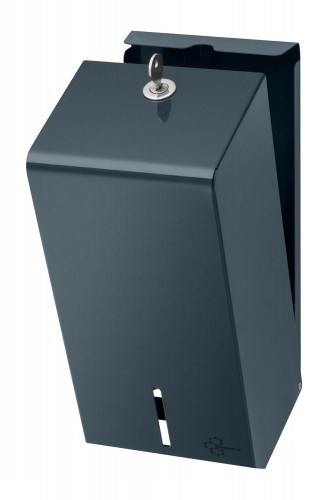 Tissue dispenser. Made of stainless steel, powder coated in graphi- te RAL 7016. It has a sight glass that allows you to control the amo- unt of the remaining cartridge. Lockable with a key. Manufactured in the UK.Description