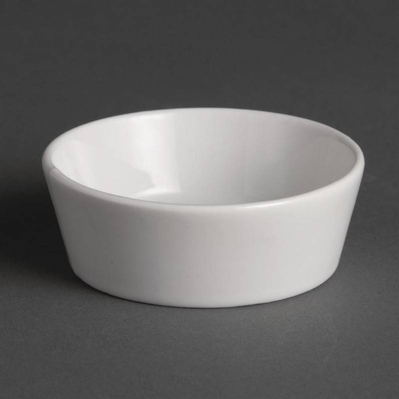 This round 3" miniature dish from Olympia is designed to provide a great value and hardwearing porcelain crockery solution for single bites and dips. Strengthened rolled edges ensure the dish is chip resistant and the fully vitrified body gives great glaze durability, making it ideal to withstand the rigours of the professional catering environment. The dish is oven, microwave, dishwasher and freezer proof.