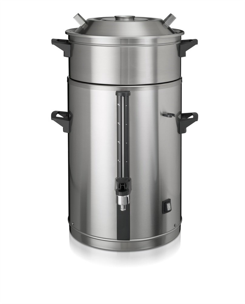 Double-walled container including lid, gauge glass, non-drip tap and anti-wave plate. Consisting of container (VHG), filter pan, spray lid and mixer.