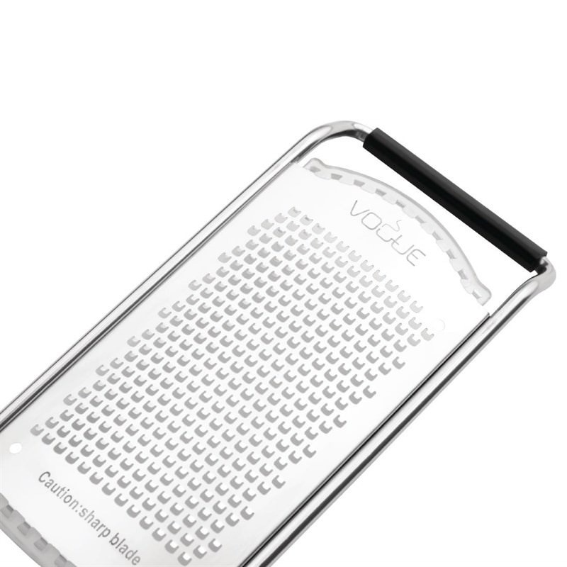 Grate ingredients with ease, thanks to the Vogue narrow blade fine grater. Made from high quality stainless steel, the grater effortlessly shreds through ingredients to speed up your preparation times. Featuring a polypropylene handle, the utensil gives you a firm yet comfortable grip to help you grate for lengthy periods of time. An essential in any commercial or domestic kitchen, this narrow blade grater is ideal for everything from cheese to chocolate.