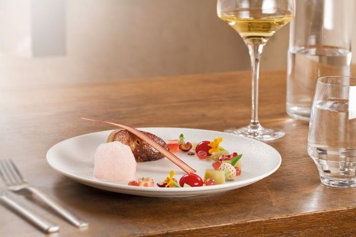 NEOFUSION takes its inspiration from mineral matter and comes in 6 different colour ways: Magma, Volcano, Ember, Stone, Terra and Sand, which can be combined with each other or with white porcelain. Each and every piece has the strength of porcelain and the look of ceramic due to a highly durable, hand-sprayed, non-porous glaze. Neofusion shows great contrasts between its raw appearance and the dishes’ refined ingredients, providing a spectacular culinary experience.
