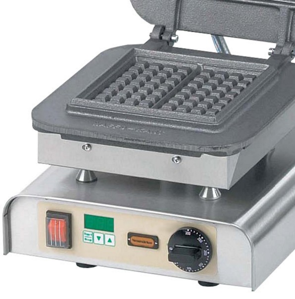 Similar look to the Brussels Waffle, but smaller and thinner. This is a light snack waffle with a classic design. • stainless steel casing • uncoated cast iron baking plates – fix mounted • on/off switch • digital timer • pilot light • thermostat • height-adjustable feet • for 2 waffles of 153 x 80 x 19 mmSpecifications