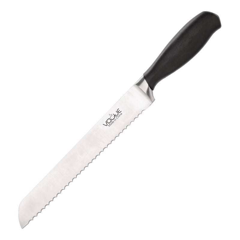 Slice through any crusty or soft loaf with easy, with the Vogue bread knife. The knife is designed with an 8" blade that will easily cut through large bread items, whilst the serrated edge ensures an even and accurate cut with each pass of the knife. Features a soft grip handle that provides excellent comfort within the hand, as well as a secure grip when wet or dry - ideal for a full day of use.