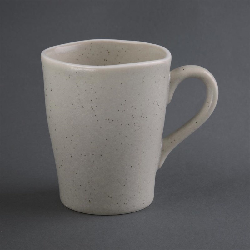 Create the perfect welcoming environment for your guests with these quaint 340ml Olympia Chia sand-coloured mugs. Produced in a subtle sand colourway, featuring a speckled glaze and finished with uneven edges, each mug boasts a rustic yet exceptionally charming appearance, adding a real touch of character to your décor. Crafted from premium porcelain, the mugs are also lightweight yet incredibly strong, giving them a feeling of quality while ensuring they are also able to endure the rigours of daily use in any busy café, coffee shop or restaurant.