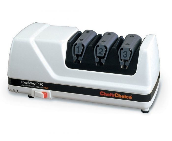 The Chef’sChoice® Diamond Hone® EdgeSelect® Knife Sharpener Model 120 delivers fast, foolproof results and highly durable edges for straight edge and serrated 20° knives.
