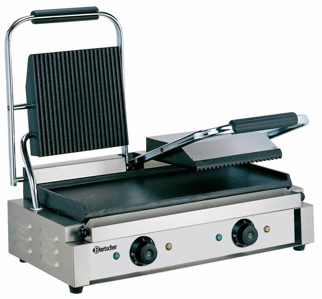 HomeOUTLETRestaurant EquipmentOUTLET - Grill kontaktowy podwójny żeliwny, płyta górna ryflowana dolna gładka, 470 x 230 mm, 3,6 kW