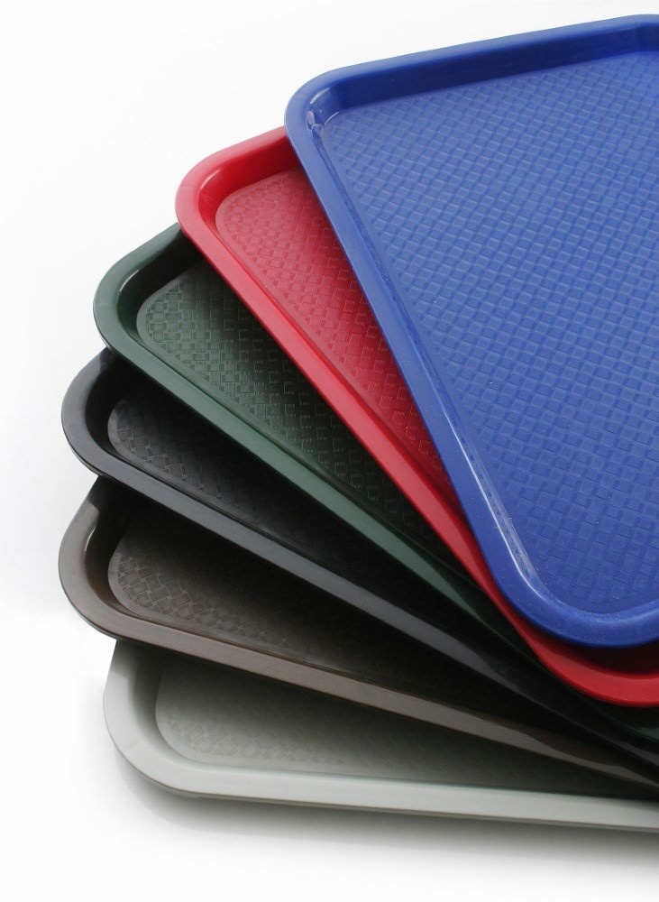 OUTLET - Prostokątna taca do serwowania Fast Food 350 x 450 mm z polipropylenu, szara