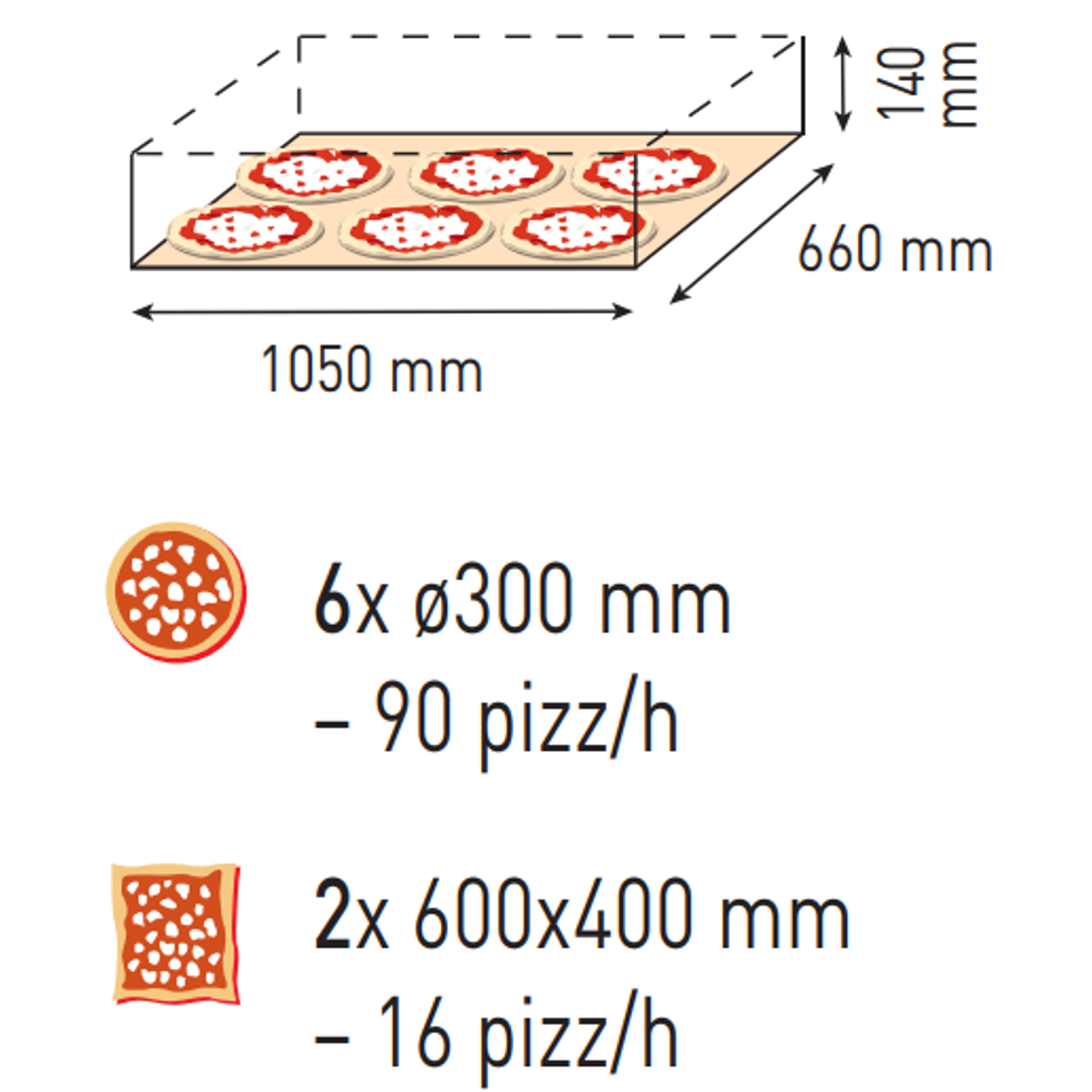 Piec 1-komorowy do pizzy, elektryczny 8,2 kW, manualny, 1320x1000x370 mm, 6xØ300 mm, MORETTI FORNI