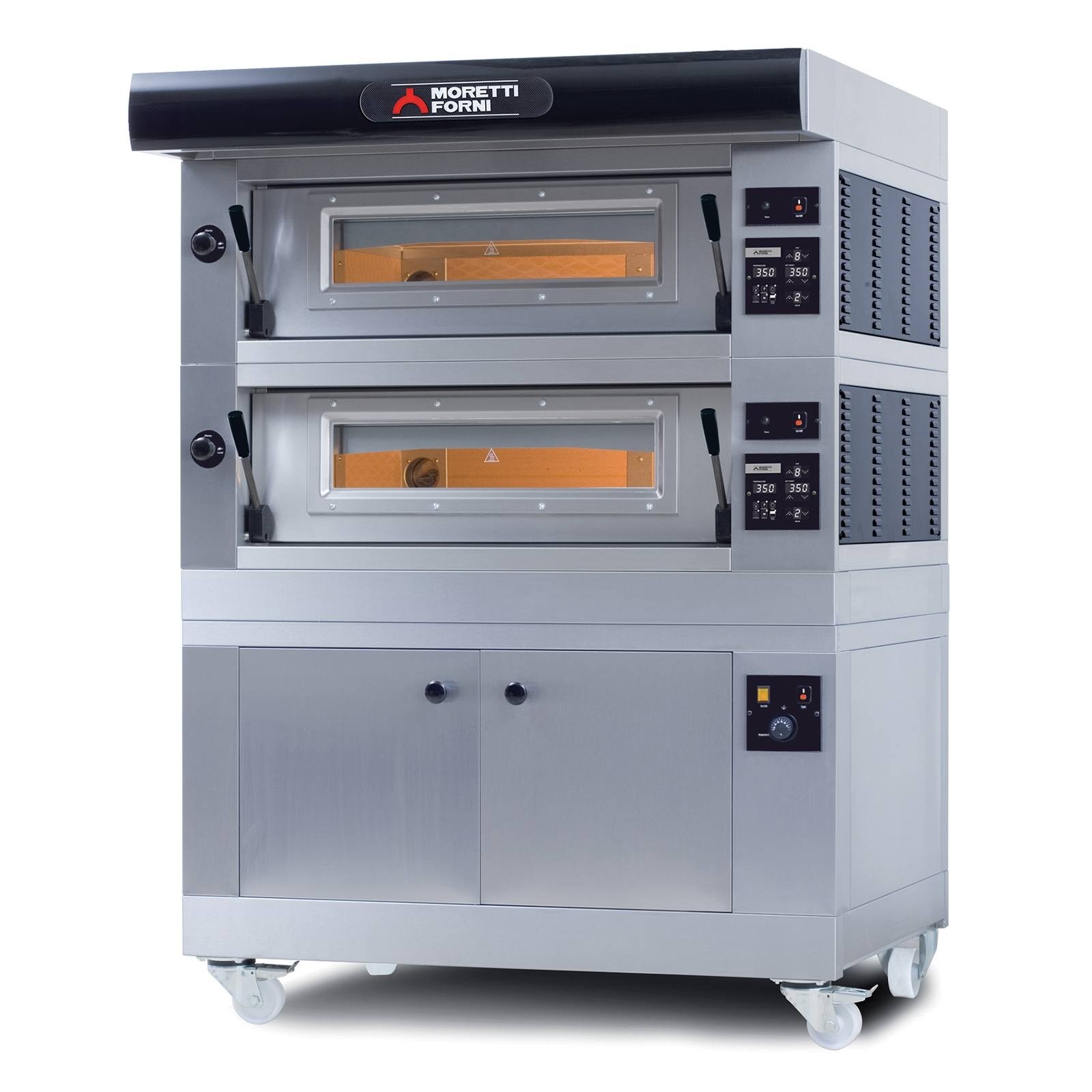 Piec 2-komorowy do pizzy z okapem i bazą, elektryczny 14,2 kW, 1020x1650x1050 mm, 12xØ300 mm, MORETTI FORNI