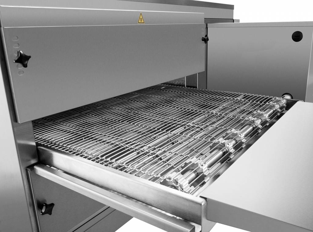- easy to receive products from the conveyor belt made of mesh