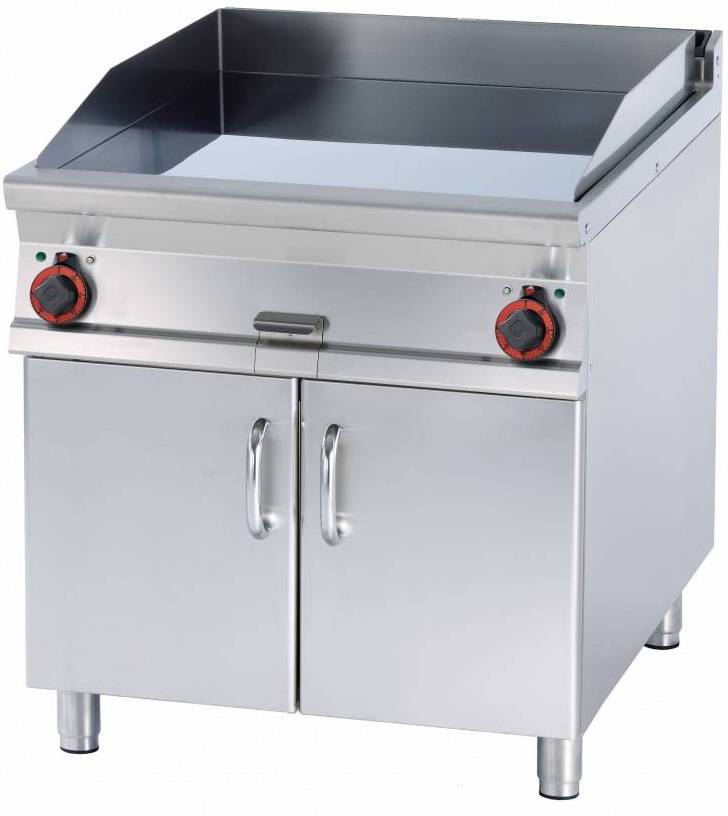 Electric Griddle 760 x 680 mm, Smooth/Ribbed, Superchromed, 2 Heating Zones, 15 kW, 400V on Cabinet Base