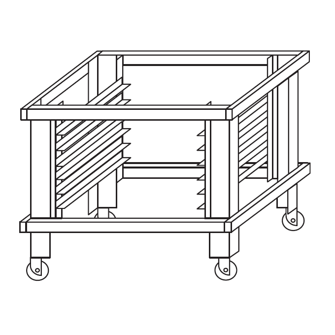 Podstawa stalowa na kołach z prowadnicami, H - 950 mm, MORETTI FORNI