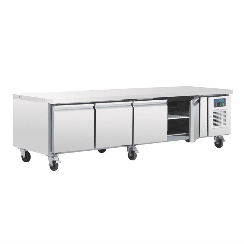 Four Door Refrigerated Table 420 L, from -2 °C to 8 °C, Side-Mounted Compressor